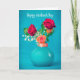 Posé sur une teinte frappante de bleu, ce joli bouquet de roses dans un vase bleu assorti est une belle façon de souhaiter à quelqu'un une bonne Fête des Mères.