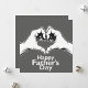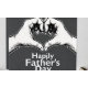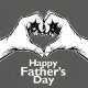Une illustration en noir et blanc de deux mains formant un cœur avec le texte "Joyeuse Fête des Pères" écrit en dessous en caractères gras sur un fond uni !