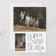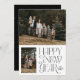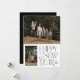Cette carte simple et élégante Happy New Year comporte deux photos et une typographie classique. La police ornée dit "Bonne nouvelle année" et il y a de la place pour le nom et l'année. Une photo horizontale se trouve en haut de la page et une deuxième photo - verticale - est à côté du texte. Le fond de son design carte photo de nouvelle année est un noir chic avec un motif étoilé blanc et une pièce pour un message plus long personnalisé. Cette carte originale Lea Delaveris Design en noir et blanc est également disponible en téléchargement numérique de carte de nouvelle année.