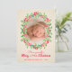 Ce charmant carte photo de vacances présente une typographie moderne et une délicate aquarelle peinte de feuilles saints et de baies ovale autour de votre photo sur un arrière - plan simple rayé d'ivoire pâle. CHANGER le dicton, les polices et la couleur de police. **AJOUTER d'autres photos ou du texte au verso avec le lien Personnaliser. Sélectionnez Matte pour le papier le plus lourd.