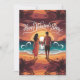 Une scène romantique se déroule alors qu'un couple se tient la main sur une plage ensoleillée. La caméra balaie doucement l'image depuis une vue large, capturant le coucher de soleil vibrant qui jette des teintes chaudes sur le ciel et se reflète sur les vagues. Alors qu'ils regardent l'horizon, la caméra fait lentement le tour d'eux, montrant le doux clapotis des vagues et le doux bruissement des feuilles de palmier. L'atmosphère est remplie d'amour et de tranquillité, renforcée par une palette de couleurs pastel. La scène se déroule en douceur, évoquant un sentiment de chaleur et de connexion, parfait pour une célébration de la Saint-Valentin.