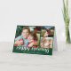Carte verte moderne pliée de Noël qui met en vedette vos 3 photos, "Happy Holidays" dans un élégant script de brosse blanche et votre nom de famille en lettres simples.