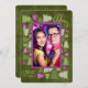 Moyen audacieux et unique d'envoyer des vœux de fêtes lorsque vous ajoutez votre photo et votre nom à cette carte photo de style feuille d'or faux avec une bordure d'arbre de Noël dans les tons vert sauge ou olive et violet.