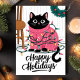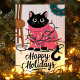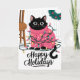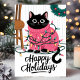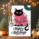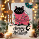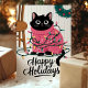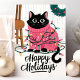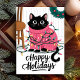 Cette carte de vœux de fête adorable présente un chat noir emmêlé dans des lumières de Noël colorées tout en portant un pull festif rose. Parfaite pour tout amateur de chats, cette carte mignonne et ludique est une excellente façon d'envoyer des vœux de fête chaleureux. L'illustration capture la joie et le plaisir de la saison des fêtes, ce qui en fait un choix délicieux pour les amateurs d'animaux et les salutations festives.