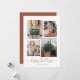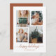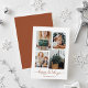 Cette simple carte de Noël ultra moderne présente quatre de vos photos personnelles préférées dans une grille de photos à l'aspect unique et superposé. Le design de la carte boho terracotta et blanche dit "joyeuses fêtes" dans une typographie élégante et tendance à l'écriture manuscrite, et comporte un emplacement pour votre nom dans une police sans serif coordonnée.