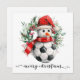 Envoyez une salutation festive avec une touche sportive ! Cette carte de vacances présente un joyeux bonhomme de neige bottant un ballon de football à l'intérieur d'une couronne de Noël magnifiquement décorée. Parfaite pour les fans de football, les enfants et les amis qui adorent un design de vacances ludique, c'est idéal pour les vœux de Noël, les accompagnements de cadeaux ou les invitations à des fêtes de fin d'année. Lumineux, amusant et plein d'esprit de Noël !