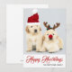 Cette création pour les fêtes comporte une photo de deux chiots Golden Retriever portant des chapeaux de Noël rouges et le texte "Joyeux Howlidays" écrit dans une typographie rouge populaire avec un nom de famille ajouté en dessous. Le verso de la carte a été laissé vierge pour que vous puissiez ajouter votre message. Pour personnaliser, vous pouvez ajouter votre propre photo et modifier le texte.