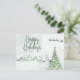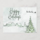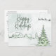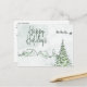 Une carte de vœux de joyeuses fêtes inspirée des modèles anciens, représentant un paysage enneigé serein. L'illustration présente un dessin au trait délicat de pins enneigés et de maisons confortables nichées dans un pays des merveilles hivernal. Au-dessus de la scène, la silhouette du Père Noël sur son traîneau, tiré par des rennes, glisse gracieusement dans le ciel. La carte est ornée d'une texture subtilement vieillie, évoquant une sensation de nostalgie et de chaleur des fêtes. Parfaite pour envoyer des vœux saisonniers avec une touche classique.