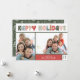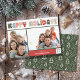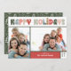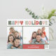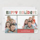 Carte photo de vacances de Noël coloré pour les familles présente deux de vos meilleures photos de famille accentuées par "Happy Holidays" dans des lettres blanches multicolores. Personnalisez avec votre nom et l'année. Les cartes retournent à un motif de Noël amusant sur un arrière - plan vert sage.