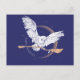 Découvrez ce graphique enchanteur d'Hedwig sur un croissant de lune, livrant le balai Nimbus 2000 d'Harry Potter, avec la phrase « Joyeuses Fêtes » !
