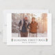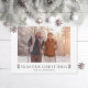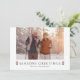 Type modifiable Joyeuses Fêtes avec poinsettias illustrées flanquant. Customisez plus loin pour ajouter du texte ou plus de photos à l'arrière. Aussi disponible en format non papier