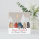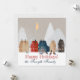 Ces cartes de Noël rustiques présentent des maisons primitives en forme de boîte à sel et des maisons coloniales devant des montagnes. Des oiseaux bleus piquent ce qui reste des baies rouges sur les buissons. La carte dit Joyeuses Fêtes ! en dessous et il y a un modèle pour vous permettre d'entrer le nom de votre famille ou des noms individuels.