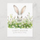 Envoyez vos souhaits de Pâques dans le style avec cette carte postale moderne de Pâques, avec un lapin blanc sucré regardant derrière un bel arrangement de fleurs sauvages de printemps délicats. Les fleurs blanches fraîches aux centres jaunes gais créent un design lumineux et stimulant, parfait pour célébrer la saison. Le devant de la carte comprend le texte "Happy Easter, from The [Your Name] Family" dans une police de script élégante, qui peut être personnalisée pour répondre à vos besoins. Le verso est vide pour un message manuscrit si vous le souhaitez. Idéal pour envoyer des salutations de Pâques sincères à la famille, aux amis et aux proches.