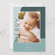 Un design chic et élégant de carte de vacances avec une seule photo verticale ou portrait sur un arrière - plan de formes organiques dans des tons doux de vert d'épinette. "Joyeux" apparaît à côté de votre photo dans le type sous-déclaré. Personnalisez-vous avec votre nom de famille et saluez-vous sur mesure pour la touche finale parfaite à ces cartes photos de Noël 2022 inspirés par la nature.