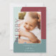 Un design chic et élégant de carte de vacances avec une seule photo verticale ou portrait sur un arrière - plan de formes organiques dans des tons doux de rouge canneberge et vert épicéa. "Joyeux" apparaît à côté de votre photo dans le type sous-déclaré. Personnalisez-vous avec votre nom de famille et saluez-vous sur mesure pour la touche finale parfaite à ces cartes photos de Noël 2021 inspirés par la nature.