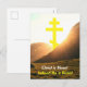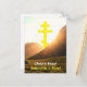 Carte de vœux de vacances de Pâques qui dit "Christ est ressuscité" "En vérité, il est ressuscité" - une salutation pascale parmi les chrétiens pendant les vacances de Pâques. La carte porte la croix orthodoxe orientale dessus.