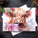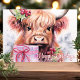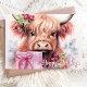 Envoyez des salutations chaudes avec cette adorable carte de Noël de vache Highland ! Avec une vache charmante tenant un cadeau enrobé festif, accentué de saint et d'un arrière - plan déneigé, cette carte est parfaite pour tous ceux qui aiment les animaux de ferme et les dessins de vacances rustiques. Apportez un sourire aux visages de vos amis et de votre famille avec cette carte de vacances ludique et festive.
