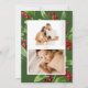 Festive baie botanique, carte de vacances multi-photo. Joyeuses fêtes en écriture verte. Caractéristiques de la carte, cadre d'aquarelle élégante de verdure et de baies avec coordination de couleur verte arrière - plan. Photo verticale unique à l'avant et deux photos horizontales à l'arrière.