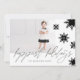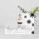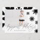 Carte photo de vacances chic, moderne et design noir et blanc avec un design de flocon de neige minimal et audacieux. Dispose d'un plan photo unique pour afficher votre propre photo de vacances. Des flocons de neige audacieux et élégants sont montés en cascade sur le dessus de la carte avec "Happiest Holiday" affiché dans la calligraphie moderne. L'envers présente un design arrière - plan abstrait de flocon de neige en noir et blanc. Toutes les illustrations sont dessinées à la main par Moodthology Papery.