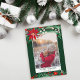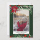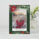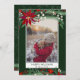 Envoyez vos voeux de Noël avec ce design de Noël chic et moderne vert, rouge, hiver avec un joli poinsettia rouge peint à la main, branches vertes avec neige blanche, ajoutez votre photo avec un cadre géométrique moderne bordure sur vert foncé. Toute la couleur du texte est modifiable.