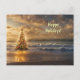 Un élégant sapin de Noël au coucher du soleil. Cette carte postale sur la plage, la côte, la mer, l'océan est une belle façon de souhaiter de bonnes vacances ! Vous pouvez également modifier le texte, la police et la couleur, et le rendre plus personnel.