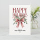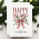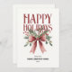 Happy Holidays Red Watercolor Bow Business Logo Holiday Card présente un accueil classique "Happy Holidays" en typographie audacieuse, accentué par un arc d'aquarelle rouge doux avec pin, baies et verdure. Le dos comprend un message saisonnier et un espace pour le nom de votre entreprise, l'approbation personnalisée et le logo. Une façon chaleureuse et professionnelle de remercier les clients, les partenaires ou les employés et de célébrer la saison. Faites-le le vôtre avec une personnalisation facile. Besoin d'une commande personnalisée ? Envoyez-nous un message, nous sommes là pour vous aider. Veuillez noter que les temps de réponse peuvent varier légèrement en raison de la différence de temps.