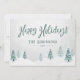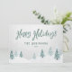Cartes de vacances rustiques avec "Happy Holidays" dans un style manuscrit avec votre nom ou nom de famille personnalisé et l'année, le tout dans la typographie vintage vert pin. Une belle vue pittoresque sur les arbres et la neige hivernale dans l'aquarelle d'art souligne l'avant de la carte. Le verso de la carte contient de l'espace texte pour votre message de vacances personnel ou peut être laissé vide pour que vous en écrivez un à la main si nécessaire. Disponible en stock de carte imprimé de haute qualité pour l'envoi standard ou un format numérique téléchargeable pour l'envoi rapide et facile par SMS, email ou même auto-impression.