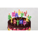 Un gâteau d'anniversaire multicolore avec garniture au chocolat et le "texte" Joyeux anniversaire!