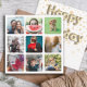 Créez votre carte d'anniversaire heureuse unique avec ce 9 modèle photo. Grille photo carré simple et moderne en blanc avec angles arrondis, idéal pour ces photos instagram. Au verso de la carte, vous trouverez "Joyeux anniversaire" écrit en lettres bulles sur un arrière - plan confetti avec un espace vide pour ajouter votre propre message. Customisez facilement.