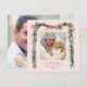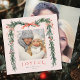 Cette élégante carte de carré de vacances photo présente un cadre de branche de pin aquarelle (bordure) orné de rubans rouges, de baies sèches et de verdure botanique, ainsi qu'une photo supplémentaire à l'arrière. Envoyez la joie de Noël à votre famille et à vos amis.