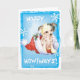 Envoyez les voeux de Noël avec cette carte d'un mignon chiot chinois en cage assis dans un chapeau de Père Noël au milieu des flocons de neige et les mots, Joyeux Howlidays! Idéal pour une famille et des amis amoureux de Crestie. Bonne journée !