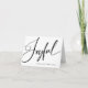 Cette élégante carte de vacances de Noël en noir et blanc dit "Joyful" dans la calligraphie moderne en écriture noire. L'arrière - plan est simple et blanche.