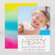 Envoyez un peu de joie de vacances avec cette carte photo Joyeux et lumineux de Noël mise en évidence par les lumières des arbres de Noël. Téléchargez simplement votre photo et ajoutez votre nom. L'arrière est ornée de rayures d'aquarelle vives et audacieuses, jaunes, vertes, bleues et roses. Amusant, coloré et gai, il est sûr de faire sourire les amis et la famille.