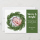 Cette conception comporte une couronne de sapin avec une photo de votre choix. Cette carte de voeux est le choix idéal pour répandre la joie ce Noël! Personnalisez-le sans effort.