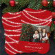 'Joyeuses Et Lumineuses Étincelles' Rouge & Blanc Noël / Collection Vacances. Brins de cercles modernes et design, drapés et feux scintillants sur un arrière - plan rouge. Un design chic, classe et élégant de vacances ou de Noël avec des cartes photos, des invitations de fêtes de vacances, des papeteries, des fournitures de fête, des accessoires d'expédition, un décor maison et des cadeaux personnalisés. L'arrière - plan de base peut être changé en n'importe quelle couleur de votre choix. Tout/La plupart du texte est modifiable. Illustration de fat*fa*tin. Facile à personnaliser avec votre propre message texte, nom, photo ou image. D'autres styles de police, filtres photo et fonctions d'édition sont disponibles sur la page "modifier la conception". ・ ・ ・ ・ ・ ・ ・ ・ ・ www.zazzle.com/fatfatin_blue_knot