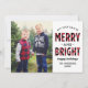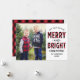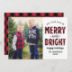 Le carte photo moderne "Joyeux et lumineux" comprend un grand espace photo et du texte noir qui peut être personnalisé. Dispose d'un motif à basalo rouge et noir rustique sur les côtés avant et arrière de la carte. Crédit photo : Two Fish Photography www.twofishphoto.com