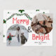 Célébrez la saison avec cette carte de Noël joliment conçue "Merry & Bright", rayonnant de joie festive et de chaleur. L'expression "Merry & Bright" est élégamment affichée au centre, encadrée par deux photos de famille chères aux coins supérieur et inférieur. Au-dessus de la salutation, un délicat spring sainte ajoute une touche de vacances classique avec des feuilles verts vibrants et des baies rouge vif. Le nom de la famille apparaît gracieusement sous le texte pour une touche personnelle. Ce design intemporel allie charme de vacances à des moments intimes en famille, ce qui en fait un endroit idéal pour les proches.