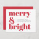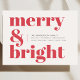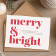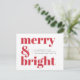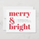 Une carte de voeux moderne et moderne avec une typographie rétro audacieuse citant "joyeux & lumineux" en rouge vif sur un arrière - plan blanc avec une couleur caractéristique complémentaire au verso. L'accueil, le message et le nom peuvent être facilement customisés pour répondre à vos besoins. Un design fun et branché pour se démarquer cette saison des Fêtes !