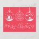 Carte postale Joyeux Rouge Noel Ornements de Noël d'affaires Fêtes d'entreprise. Une carte de Noël parfaite pour les entreprises à envoyer. Comprend 3 ornements, dont un avec "Joyeux et lumineux" au centre. Ajoutez votre logo pour en faire votre propre logo. Une carte postale simple et amusante pour les marques d'entreprise, les petites entreprises, ou les particuliers comme les maquilleurs, les esthéticiens, les coiffeurs, et bien plus encore ! En ce moment, c'est une couleur rouge et blanche, mais vous pouvez changer n'importe quelle couleur à ce que vous voulez utiliser! Même les ornements peuvent être changés. Un mélange de typographie moderne et de script pour un look professionnel mais chic. Disponible sous forme de carte imprimée ou de carte numérique téléchargeable que vous pouvez envoyer par e-mail ou avoir imprimé localement !
