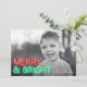 Éclairez la journée de tous en envoyant à vos amis et à votre famille notre carte de vacances Neon Merry and Bright. La carte de vacances unique et moderne présente "Merry & Bright" en lettres néon rouge et vert. Personnalisez l'avant de la carte de Noël du néon en ajoutant votre photo et vos noms. Le dos de la carte de vacances néon présente un motif rayé en diagonale rouge et blanc. Conçu pour coordonner avec notre collection de vacances Neon.