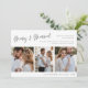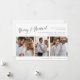 Cette carte de vacances minimaliste moderne et mariée présente un texte élégant qui dit "Joyeux et Marié" avec 3 photos verticales pour les jeunes mariés célébrant leur premier Noël ensemble en tant que mari et femme. Carte parfaite pour les vacances. Crédits : Image de Freepik