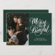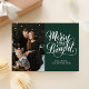 Joyeuse et brillante calligraphie verte Carte de vacances photo moderne. Envoyez des voeux de vacances personnalisables et personnalisés à vos amis, collègues et famille dans des cartes de style simple, chic, élégant et moderne design photo festif, naturel minimaliste! Ci-dessous la calligraphie présente votre message de voeux personnalisé dans la typographie moderne.
