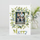 Un Carte photo de Noël moderne avec une belle aquarelle vert et bleu cadre feuille avec un texte coloré "Joyeux". Vous pouvez le modifier avec vos propres photos et texte à partir du menu Personnaliser. Veuillez me contacter pour toute aide et les produits correspondants.