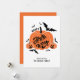 Joyeux Halloween ! Envoyez des voeux de vacances éffrayants à votre famille et à vos amis avec cette carte d'Halloween personnalisable. Il présente des citrouilles mignons et éffrayants et des chauves-souris avec typographie moderne. Personnalisez cette carte Halloween personnalisée en ajoutant vos détails. Cette carte d'Halloween citrouille est disponible dans une variété de cartons.