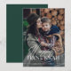 Cette carte de Hanukkah simple et élégante dit "Joyeux Hanukkah" dans un mélange de texte moderne gras et de calligraphie classique, sur une superposition de photo sur votre photo de famille préférée. Le dos de la carte est d'une couleur vert émeraude foncé.