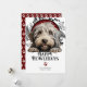 Happy Howlidays Bergamasco Dog Christmas Carte de vacances de Ricaso - conçu avec une merveilleuse typographie Happy Howlidays texte à l'avant - une amusante carte de vacances à thème chien, votre membre de famille furry mérite d'envoyer ses propres voeux de vacances .. facile d'ajouter votre propre texte et photo - avec un motif empreinte de patte amusant et audacieux à l'arrière