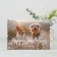 Diffusez la joie pendant la période des fêtes avec cette carte de vœux élégante mettant en vedette votre ami à quatre pattes favori avec un texte au pinceau qui dit "Joyeux Howlidays" et est accompagnée d'un motif de neige assorti au verso