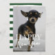 Fun and Festive Happy New Year Typography with Green and White Stripes, Confetti Dots, et un Carte photo.