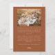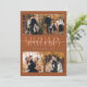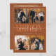 Elégante et moderne carte de vacances avec un texte typographique qui dit "paisible, ludique, joyeux" avec 4 photos carrés. Ajoutez une autre photo au dos avec votre message. L'Arrière - plan est en terre cuite.