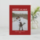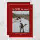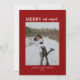 Carte de vacances de Noël minimal pour mariés et mariés avec arrière - plan rouge. Personnalisez-le avec vos détails. L'image n'est présentée qu'à titre d'illustration, remplacez-la par votre photo.
